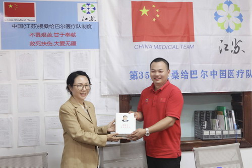 陈大使并向医疗队赠送了学习书籍。