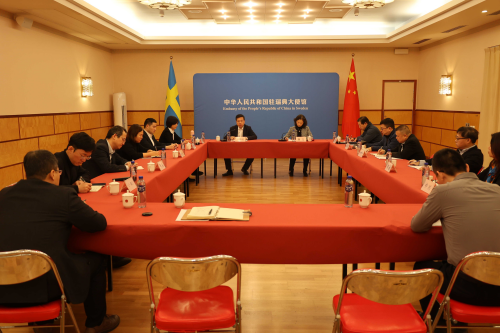 2025年12月30日,驻瑞典使馆临时代办万德刚出席使馆举办的在瑞中资企业专题座谈会,10家在瑞中资企业及中国商会负责人参会。