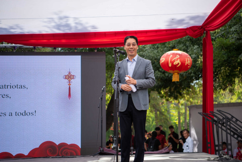 2026年1月25日,驻智利大使牛清报出席智利侨界新春文化庙会。智前驻华大使马塔、施密特、贺乔治和首都大区部分市长、市议员及现场数百名各界群众参加正式活动。