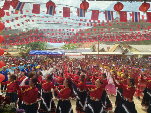 联欢现场红旗飘扬。数千名华人村姐妹身着民族服装、齐跳欢快舞蹈、高唱《国家》《我的中国心》。杨英凤会长表示将继续办好华人村妇女大联欢,团结云南裔女同胞坚定支持民族复兴伟业和祖国统一大业。