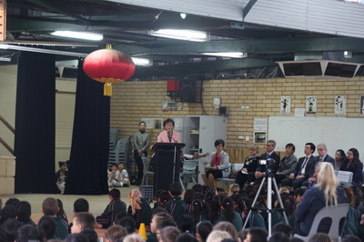 2019年8月8日,驻珀斯总领事董志华走访西澳州首家汉语“沉浸式”教学公立小学澳博思(Oberthur Primary School),出席该校为中国姊妹学校杭州行之小学来访师生举办的全校大会并致辞,走入课堂与中文教师和孩子们亲切互动。西澳州教育部长代表、州议会上院议员杨帅和州影阁亚洲事务部长麦克·纳罕一同出席活动并致辞。