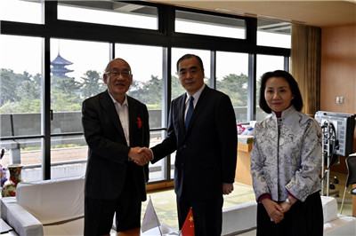 荒井知事表示,中华文化博大精深,奈良自中国唐朝以来深受中国影响,已成为本县宝贵财富。鉴真大师不畏艰险来日设坛授戒的事迹不断激励我们投身日中友好事业。奈良县愿继续致力日中交流,推动两国互学互鉴,共同引领本地区合作共赢。
