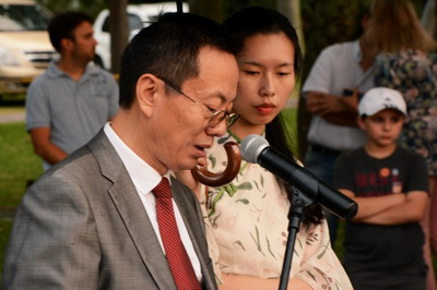 王大使在致辞中表示,去年是中华人民共和国成立70周年和中乌议会友好交往60周年,近年来中乌高层互访、人文交流日趋频繁,新时代中乌在“一带一路”框架下的经贸合作和文化交流蓬勃开展,相信雕塑的落成将进一步加深两国人民之间的友谊。