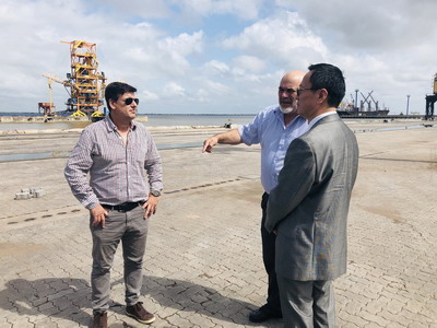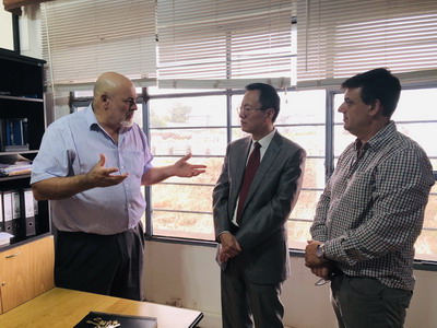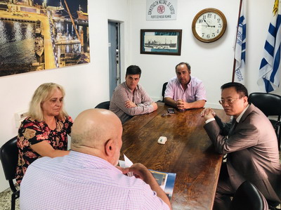 在帕萨里诺市长陪同下,王大使考察了新帕尔米拉港并会见港务局局长马尔克斯。马介绍了港口建设和贸易情况。王大使表示,新帕尔米拉港战略地位重要,中国是乌第一大贸易伙伴和最大出口市场,很多输华大豆和纸浆都是从这里装船的。中方愿同乌方进一步挖掘两国在港口建设等领域的合作潜力,共同促进两国经贸投资关系迈上新台阶。