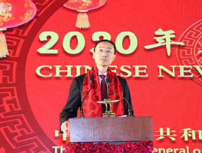 孙大使在致辞中表示, 2019年中国人民隆重庆祝了中华人民共和国成立70周年,中国共产党十九届四中全会胜利召开。中国经济高质量平稳发展,脱贫工作成效显著。中国坚定不移地走和平发展道路,旗帜鲜明反对单边主义、霸权主义,维护国际公平正义,倡导开放包容、合作共赢,推动构建人类命运共同体。2020年中国将全面建成小康社会,实现第一个百年奋斗目标。中国将打赢脱贫攻坚战,几千年来首次彻底消除绝对贫困。