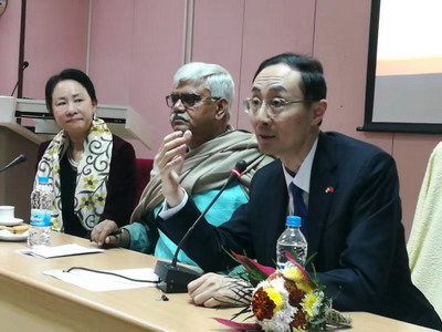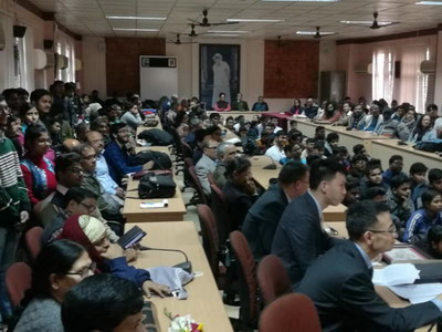 孙大使还就中国发展经验、中印文化交流等问题与现场学生互动交流。现场座无虚席,气氛热烈。