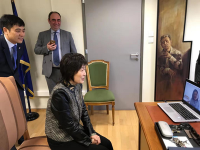 章大使通过视频连线慰问了刚刚返回希腊正在进行居家隔离的汉语教师,详细了解她在克里特岛的工作和生活情况,勉励她更好地传播中国文化,培育精通汉语和了解中国文化的人才。
