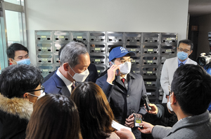 孙总领事还与闵校长一起前往隔离宿舍楼与来自山东省的两位中国留学生隔窗致意并进行通话,希望她们安心、开心、放心地度过每一天,坚信一定能够早日战胜疫情,中国驻光州总领事馆永远是领区中国留学生的坚强后盾,朝鲜大学就是她们温馨的家。两位中国留学生和学生会代表激动地表示感谢孙总领事和闵校长专门来看望慰问,相信很快就能恢复正常学习生活。