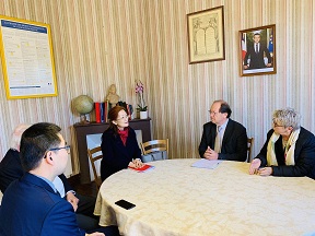2020年2月20日,驻马赛总领事陆慧英参访奥克西塔尼大区雅文邑白兰地(Armagnac)产区诺加罗(Nogaro)、佩尔谢德(Perchède)等乡镇,拜会该地区乡镇联合体主席伊丽莎白•杜布依-密特朗女士(Elisabeth DUPUY-MITTERRAND)、有关乡镇及地区非政府组织负责人,并参观乡镇基础设施建设、当地酒庄等。