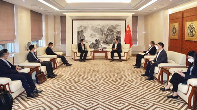 2020年9月27日,驻韩国大使邢海明会见来韩国访问的江苏省商务厅厅长赵建军。