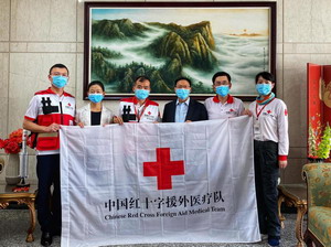 2020年9月30日,驻卡拉奇总领事李碧建会见即将离任回国的中国红十字会第四批援巴医疗队政委陈凡、队长陈刚及队员,向医疗队致以国庆、中秋佳节祝福,高度肯定医疗队在巴的努力工作及无私奉献,并就双边公益医疗合作等问题交换了看法。