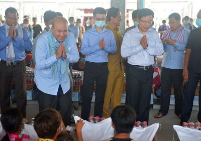 仪式上,金边市长坤盛介绍了金边市受灾情况和救灾进展,感谢中方对金边抗灾工作给予大力支持。