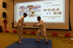 本次比赛的主题是“学会中国话,朋友遍天下”。比赛包括主题演讲、知识问答、才艺展示等环节。各位选手不仅为大家带来精彩演讲,还展示了武术、相声、舞蹈、书法、国画、剪纸、皮影等具有中国特色的才艺技能,现场掌声热烈,气氛活跃。经过3个多小时的角逐,来自阿布扎比哈姆丹·本·扎耶德学校的学生获一等奖,他将代表阿联酋前往中国参加世界中学生“汉语桥”比赛总决赛。比赛结束后,林代办向获奖选手颁发了证书和奖杯,同选手和指导老师们合影留念。林代办并在现场接受了阿布扎比电视台、中阿卫视等媒体采访。