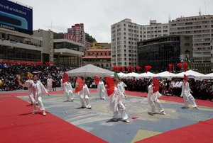 2019年1月18日,驻玻利维亚大使梁宇出席驻玻使馆同拉巴斯市政府在该市圣弗朗西斯科大教堂广场联合举办的2019年“欢乐春节”活动。玻前外长、武术组织主席瓦纳库尼、玻圣安德列斯大学校长阿尔瓦拉辛,以及市政府代表、驻玻使节、部分大学师生、旅玻华侨华人、在玻中资商会、新闻媒体和拉巴斯市民等千余人参加。