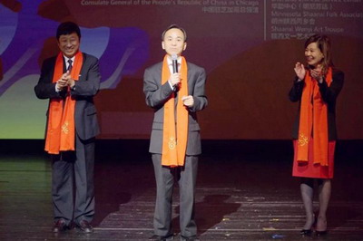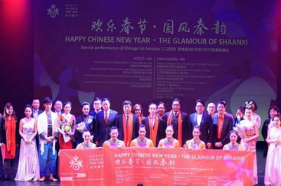 2019年1月17日,驻芝加哥代总领事刘军出席陕西省“欢乐春节·国风秦韵”芝加哥春节慰侨活动。陕西省代表团团长阚开沛、大芝加哥地区华侨华人联合会(华联会)主席郑征、芝加哥侨界代表、文化界人士及当地华侨华人和美国观众近500人观看了演出。