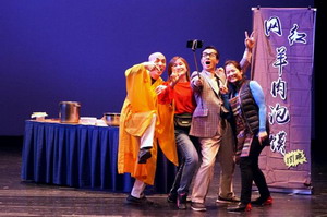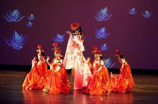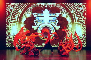 晚会现场,陕西特色大唐乐舞、古筝和琵琶等民乐演奏、秦腔独唱、古韵诗画舞和红绸舞与当地演员同场献技,交相辉映,赢得现场观众的满堂喝彩。