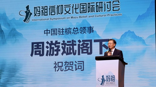 2025年10月4日,驻槟城总领事周游斌出席妈祖信仰文化国际研讨会开幕式,槟城州社会发展、福利及非伊斯兰事务行政议员林秀琴,州议员黄顺祥、王宇航,槟城和谐机构总经理欧宗义,中国、马来西亚、新加坡、日本学者等150余人参加活动。