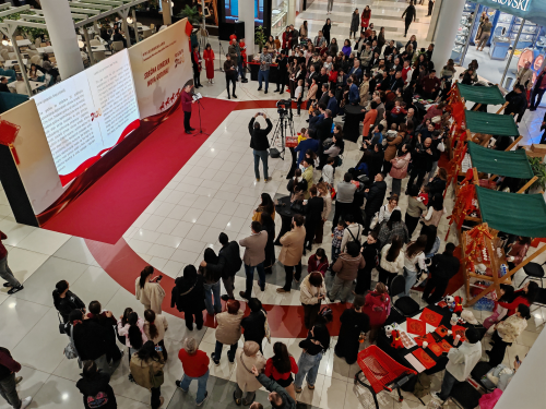现场气氛热烈,中黑青年才艺表演尽显活力,剪纸、书法体验让民众沉浸于东方美学,春卷、锅贴等美食大受欢迎。陈大使和武约维奇等嘉宾现场接受黑山媒体联合采访。此次活动拉开了庆祝中黑建交20周年系列活动的序幕。
