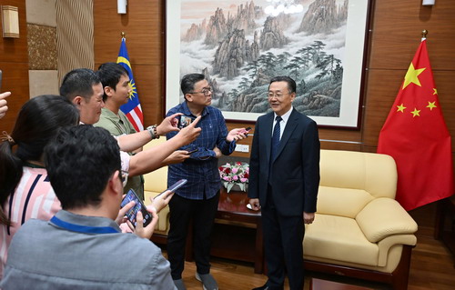 周游斌总领事:非常高兴在新年之初接受《光华日报》《光明日报》《星洲日报》《中国报》《南洋商报》的联合采访。感谢各媒体在2025年积极报道中国经济社会发展成就和中马各领域交流合作成果。在新的一年,中国驻槟城总领馆愿与各媒体进一步深化合作,继续讲好中马友好的故事。下面我愿接受大家的提问。
