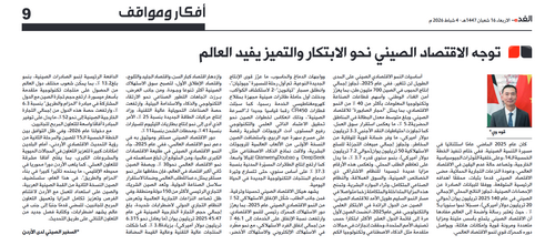 2026年2月4日,驻约旦大使郭伟在约旦《明天报》发表署名文章《中国经济向新向优惠及世界》,强调中国经济基础稳,优势多,韧性强,潜能大,创新活力迸发,结构不断优化,其长期向好的基本面不会改变,是世界经济增长的主要贡献者和稳定锚。全文如下: