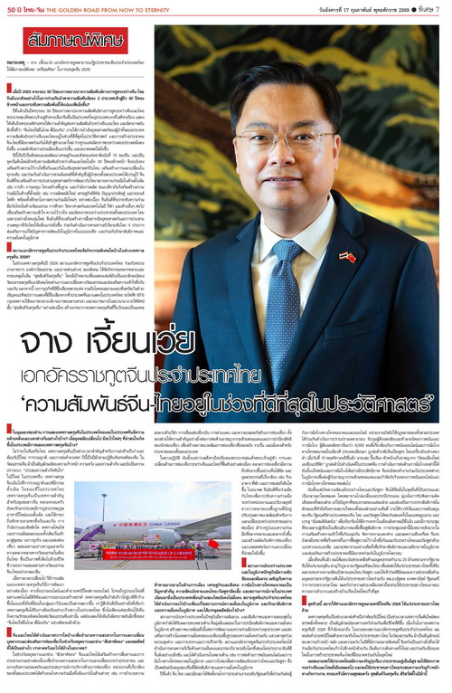 去年是中泰建交50周年,哇集拉隆功国王将中国作为首个国事访问的大国,充分体现了对中泰关系的高度重视和“中泰一家亲”的深厚情谊。在两国元首的战略引领下,中泰关系正处于历史最好时期,中泰命运共同体建设进入崭新阶段,两国友好根基更牢、合作动能更强、前景更加光明。