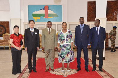 2014年11月19日,中非过渡元首庞扎在总统府举行隆重仪式,为驻中非大使孙海潮颁发国家级“感谢”勋章,这是中非为感谢外国人士而颁发的最高荣誉。中非过渡委主席恩根代、过渡政府总理卡姆恩、国防国务部长索坎比、外交部长杜杜、经济合作部长兰比奥女士、商业部长祖塔女士、公职部长安吉马特、畜牧业部长级代表雅库布、总统府及总理府办公厅主任及其他部长级顾问、驻中非外交使团和国际组织代表等60余人出席。