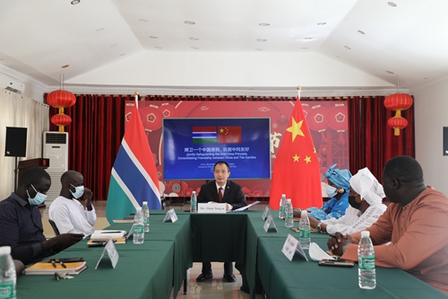 2022年8月11日,驻冈比亚使馆临时代办周宁宇主持“捍卫一个中国原则,巩固中冈友好”座谈会,冈国民议会议员阿拉吉·西塞、联合民主党副党首塞卡、全国主席亚博、发言人塔尔、国家人民党代表福迪·西塞、《旗帜报》主编查姆等与会。