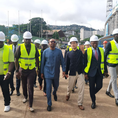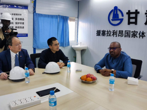 2023年9月19日,驻塞拉利昂大使王擎陪同塞副总统贾洛视察正在进行大修的中国援塞国家体育场。塞体育部部长、工程部部长以及项目承建方负责人等参加。