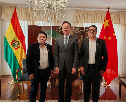 2024年8月23日,驻玻利维亚大使王亮会见玻众议院拉巴斯省议员劳拉、拉米雷斯。
