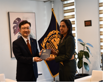2025年9月30日,常驻国际海底管理局代表王锦峰大使在牙买加首都金斯敦向国际海底管理局秘书长莱蒂西亚·卡瓦略递交全权证书。