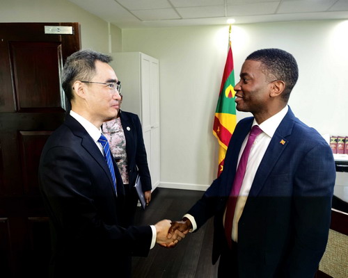 2025年9月30日,驻格林纳达大使杨舒到任拜会格总理米切尔。