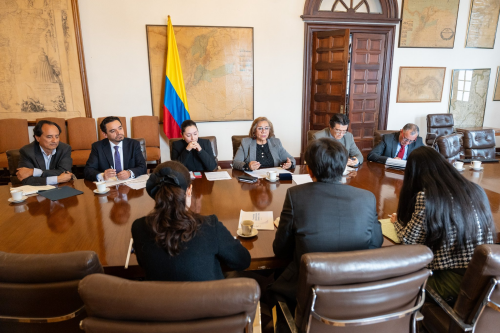 2025年10月1日,驻哥伦比亚使馆临时代办张立平应约拜会哥外长比利亚维森西奥及通信部长穆尔西亚,就深化双边关系、推进“一带一路”合作等进行交流。