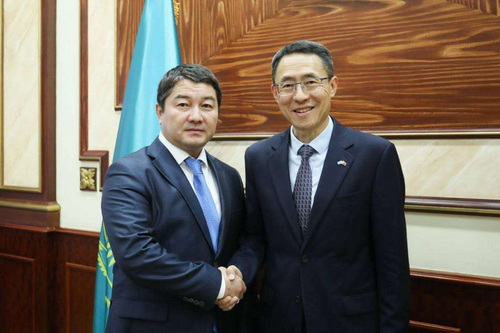 2025年10月4日,驻哈萨克斯坦大使韩春霖在阿克套市拜会曼吉斯套州州长基雷拜。