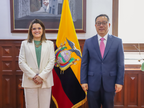 2025年11月24日,驻厄瓜多尔大使孙向阳在厄瓜多尔副总统府拜会副总统玛利亚·何塞·平托。