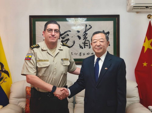 2025年12月12日,驻瓜亚基尔总领事高振廷会见厄瓜多尔国家警察第八警区新任司令比利亚罗埃尔将军,双方就保障中国安全与合法权益进行交流。