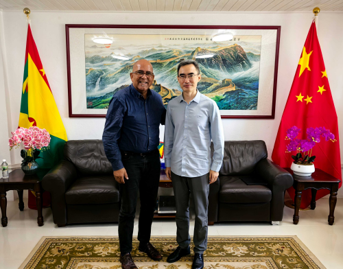2026年1月5日,驻格林纳达大使杨舒会见格林纳达民主人民运动党政治领袖、圣乔治城选区众议员戴维,双方就中格关系、党际交往等交流意见。
