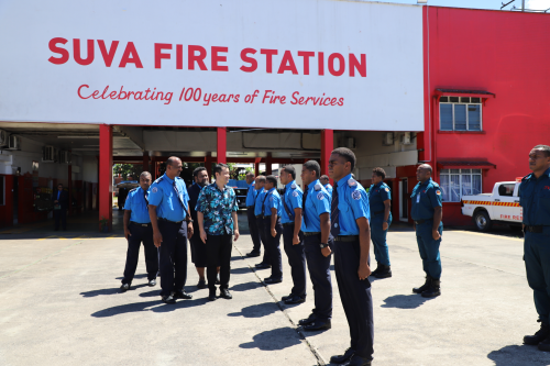 驻斐济使馆临时代办汪元偕使馆外交官赴斐济国家消防局总部参观交流