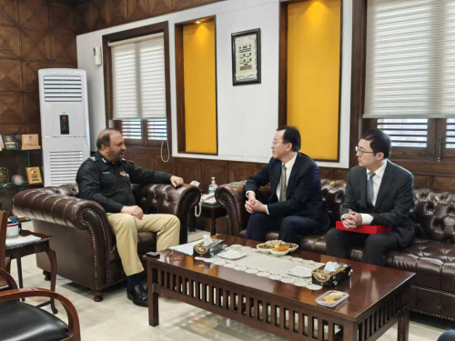 2026年1月22日,驻卡拉奇总领事杨云东会见信德省新任警察总监贾韦德。杨总领事祝贺贾履新,双方就进一步加强涉华安保,为中方人员、机构、项目营造良好安全环境等交换了意见。