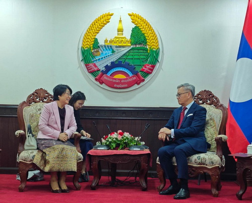 2026年3月23日,驻老挝大使方虹拜会老挝副总理兼外长通沙万,转达中国领导人致老挝领导人的就任祝贺,表示老挝十届国会一次会议召开,选举产生新一届国家和政府领导人,相信在老挝党坚强领导下,老挝党和国家各项事业将取得新的更大成就。中方愿同老方以建交65周年暨“中老友好年”为契机,深化战略沟通,拓展务实合作,打造高标准、高质量、高水平的老中命运共同体。