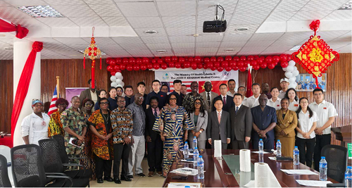 2026年3月27日,驻利比里亚大使尹承武出席利比里亚卫生部举办的中国援利医疗队迎送招待会暨中国使馆向利卫生部捐赠医疗物资仪式。利卫生部长波托、JFK医疗中心、医疗和牙科委员会、利中友协、第17、18批医疗队等100余人出席。