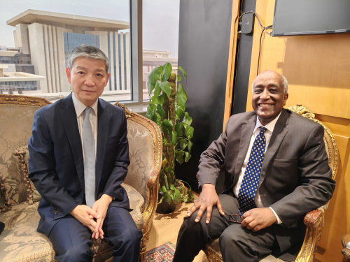 2026年4月1日,驻埃及大使廖力强会见埃及外交部新任非洲事务副部长阿布·巴克尔。双方就中埃关系、中非合作、地区局势等友好深入交换意见。