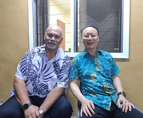 2026年4月10日,驻瑙鲁大使吕进同瑙鲁外长安格明工作交流。