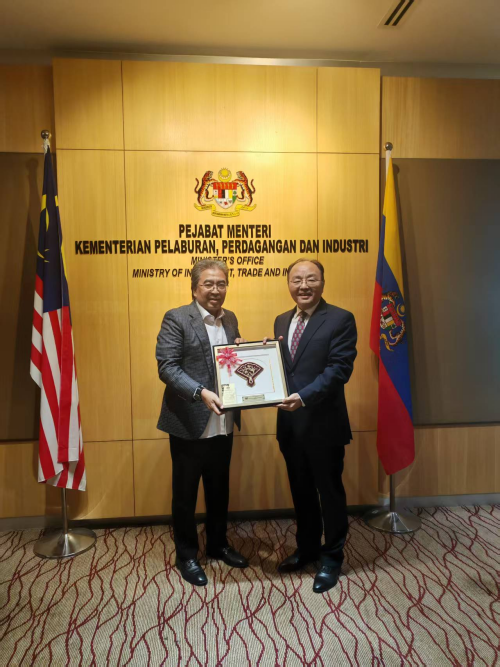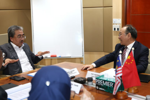 2026年4月22日,驻马来西亚大使欧阳玉靖拜会马来西亚投资、贸易与工业部长佐哈里,重点就中马关系和两国经贸合作深入交换意见。