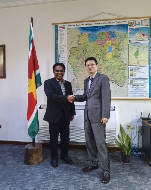 2026年4月24日,驻苏里南大使林棘拜会苏农牧渔业部长迈克·努萨林。