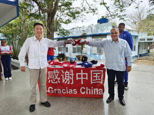 2026年4月24日,驻古巴大使华昕出席中国国家体育总局向古巴捐赠体育物资交付仪式,古体委主席本托、塞罗·佩拉多高水平运动员训练学校校长及近百名古教练员、运动员代表参加。
