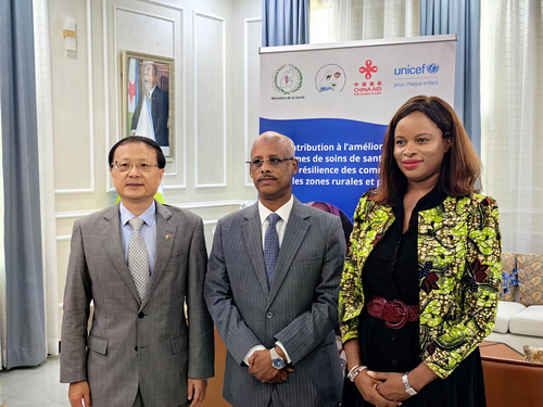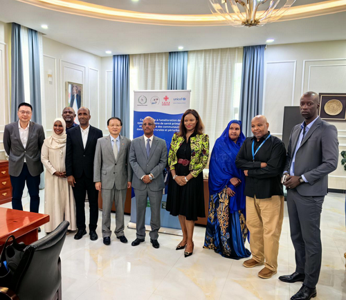 2026年4月26日,驻吉布提大使胡斌出席“提升初级医疗卫生保健系统和社区复原力项目”启动仪式,联合国儿童基金会(UNICEF)驻吉代表图雷、吉卫生部部长阿卜迪莱及相关政府官员等参加。