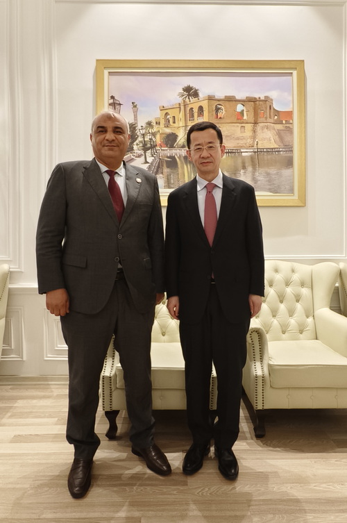 2026年4月26日,驻利比亚大使马旭亮会见利民族统一政府外交与国际合作部亚澳司司长哈桑。
