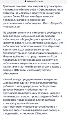 2021年9月6日,俄罗斯鞑靼斯坦通讯社刊登就美国情报部门炮制所谓病毒溯源问题调查报告对驻喀山总领事吴颖钦的书面采访。