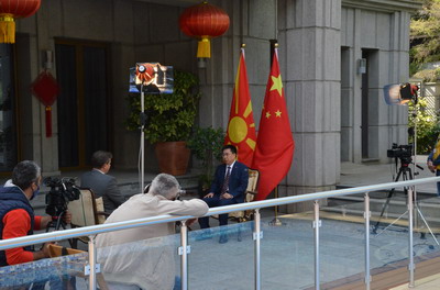 在中华人民共和国成立72周年之际,驻北马其顿大使张佐接受北马国家广播电视台1频道政治新闻编辑博加蒂诺夫采访,就新中国成立72年来的发展成就、国际抗疫合作以及中国—中东欧国家合作框架下双边关系等回答了记者提问。
