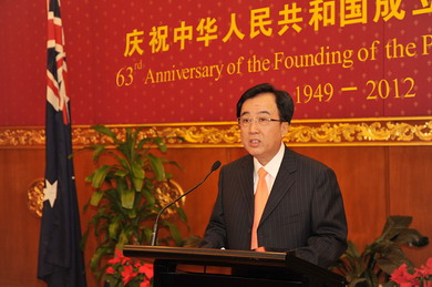 我谨代表中国驻澳大利亚大使馆热烈欢迎各位出席中国国庆招待会,感谢各位多年来对中澳关系和中国驻澳使馆的大力支持。
